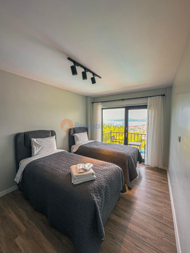 Giriş katta 1 yatak odası, 2. katta 4 yatak odası bulunmaktadır. 2. katta havuz tarafına bakan 3 yatak odasınında balkonu bulunmaktadır.