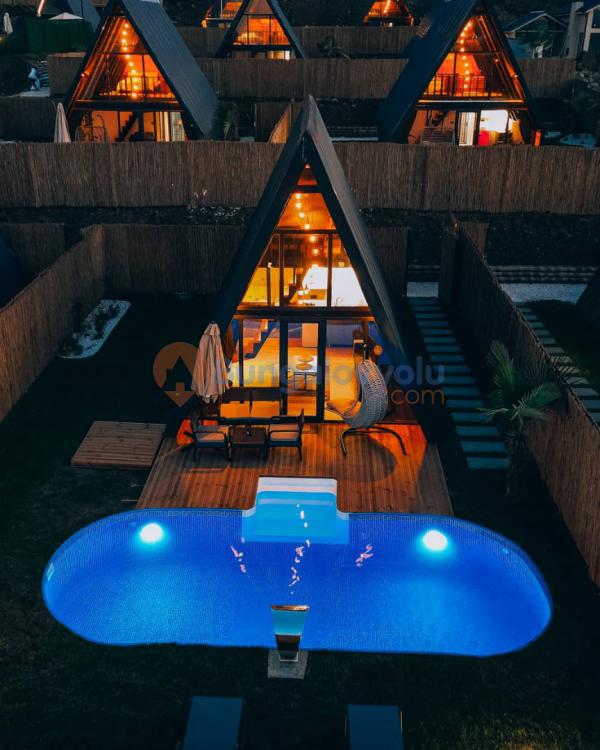 Sapanca Uzunkum da 2+1 Sıcak Havuzlu, Jakuzili, Muhafazakar 5 Kişilik Bungalov