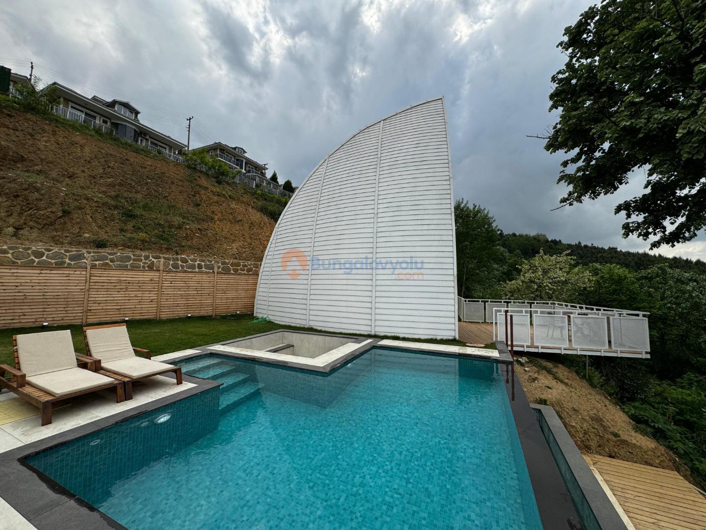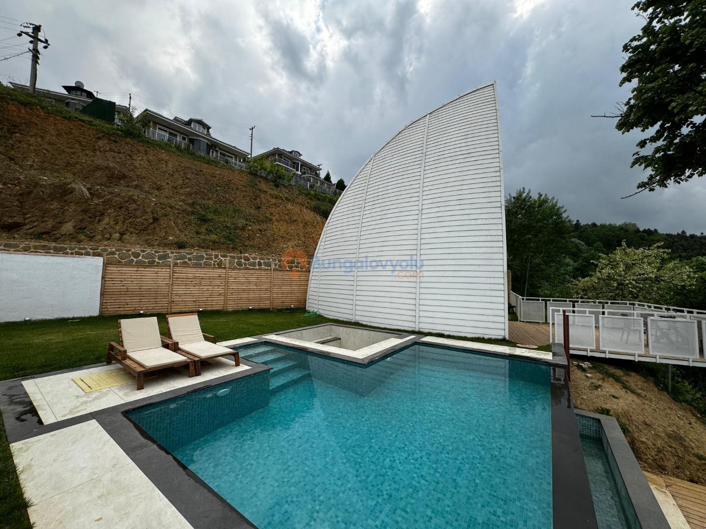 Sapanca gölü manzarası eşliğinde sonsuzluk havuzu bulunan yelken konseptli bungalovumuz sizleri bekliyor.