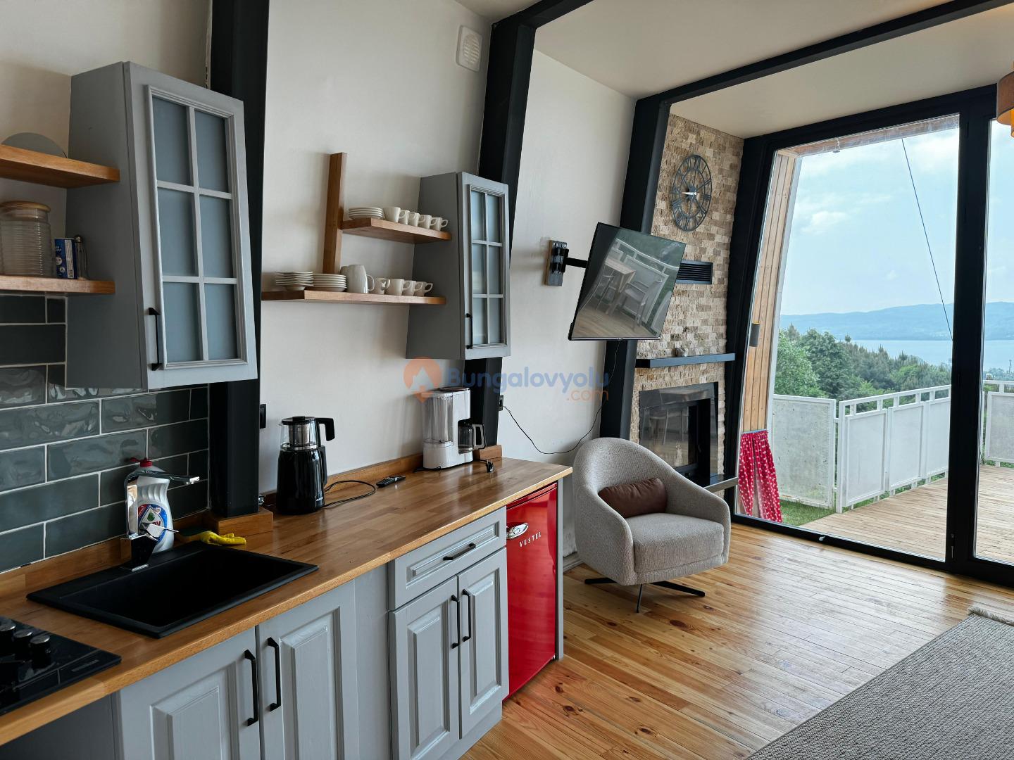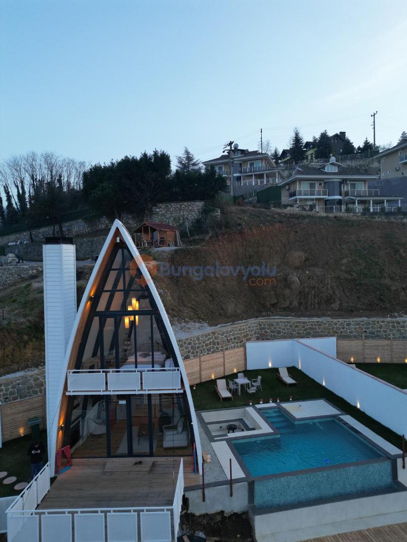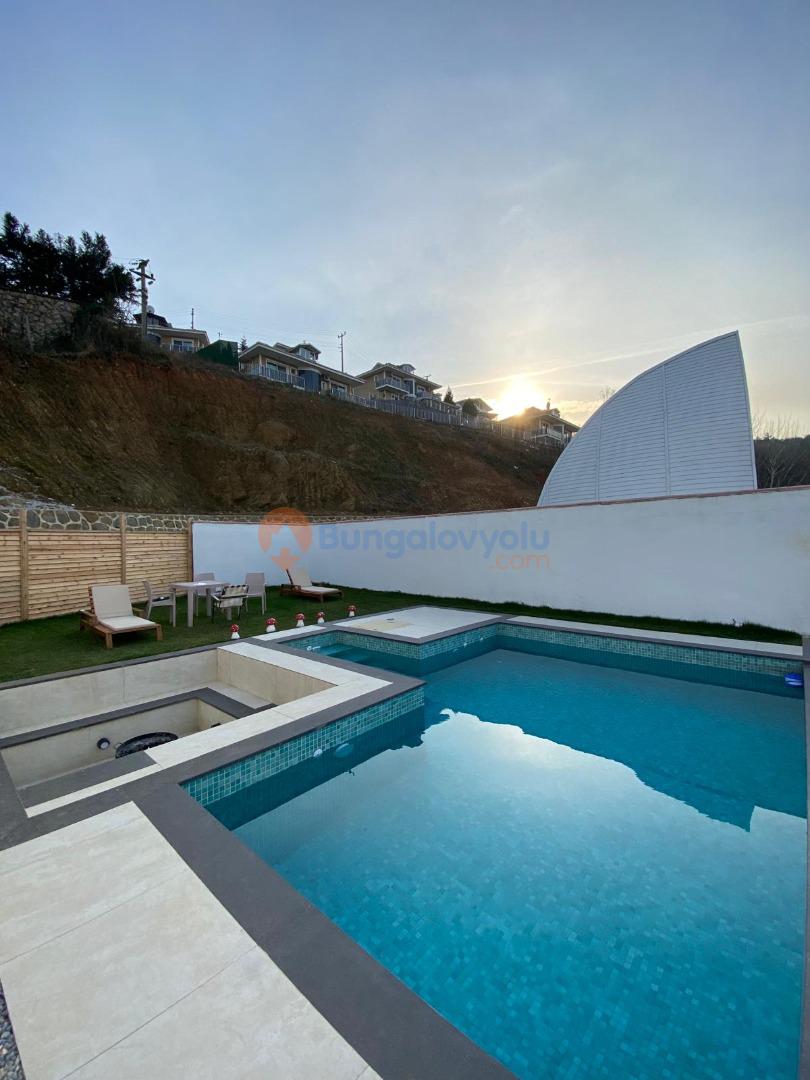 Sapanca/Mahmudiye de 1+1 Isıtma Havuzlu, Göl Manzaralı, Şömineli, 4 Kişilik Lüks Bungalov