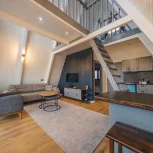 Sapanca’nın doğayla iç içe atmosferinde konumlanan bu 2+1 bungalov, göl manzarası ve tamamen izole yapısıyla hem konfor hem de mahremiyet arayanlar için ideal bir konaklama deneyimi sunar. 5 kişiye kadar kapasitesi bulunan evde, loft katta çift kişilik yatak, giriş katta ise iki adet tek kişilik yatak yer alır. Isıtmalı ve korunaklı özel havuzu, jakuzisi ve yerden ısıtma sistemi sayesinde yılın her döneminde keyifli bir tatil imkânı sağlar.