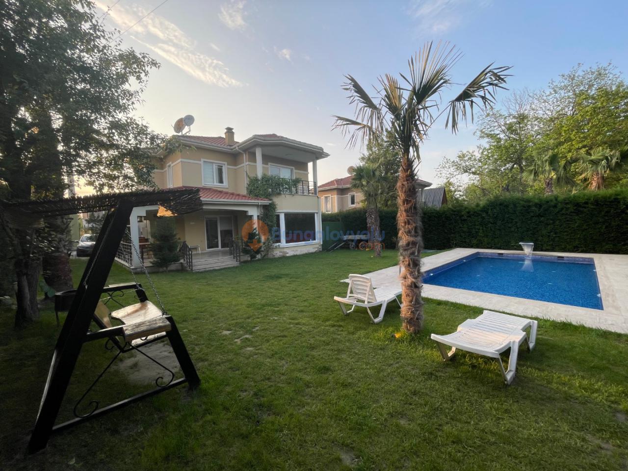 Bahçe alanında salıncak, barbekü, ateş çukuru, şezlong, şemsiye ve veranda alanında oturma grubu mevcuttur.